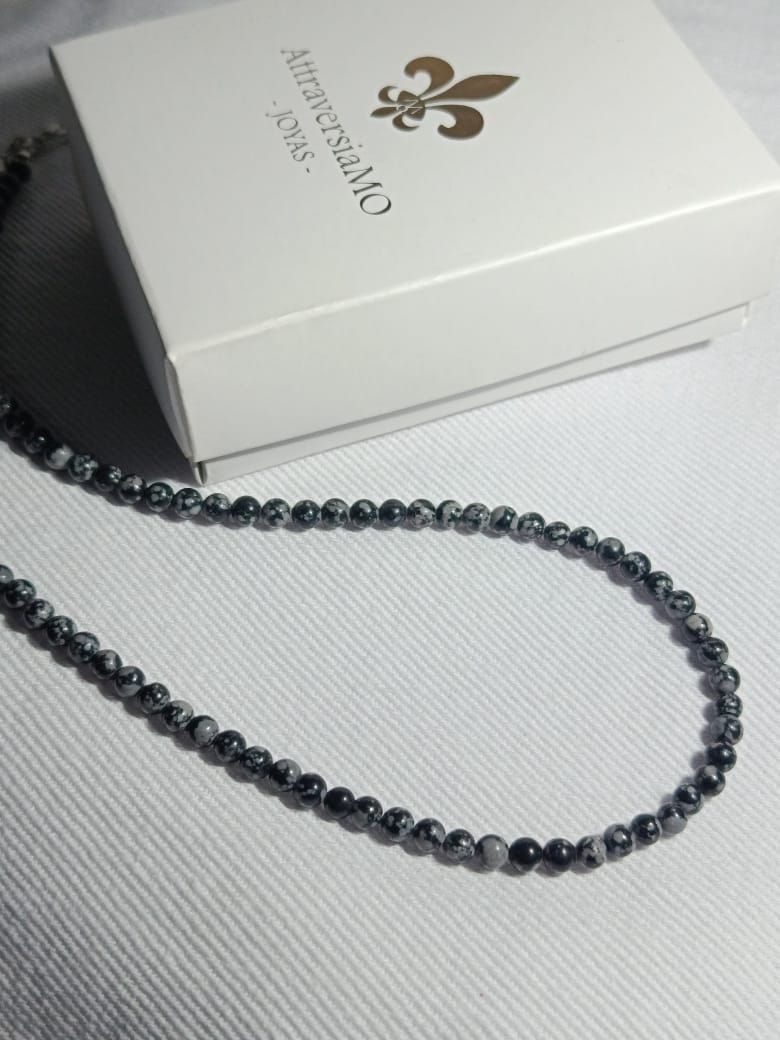Collar de Obsidiana nevada (bolitas de 4mm)