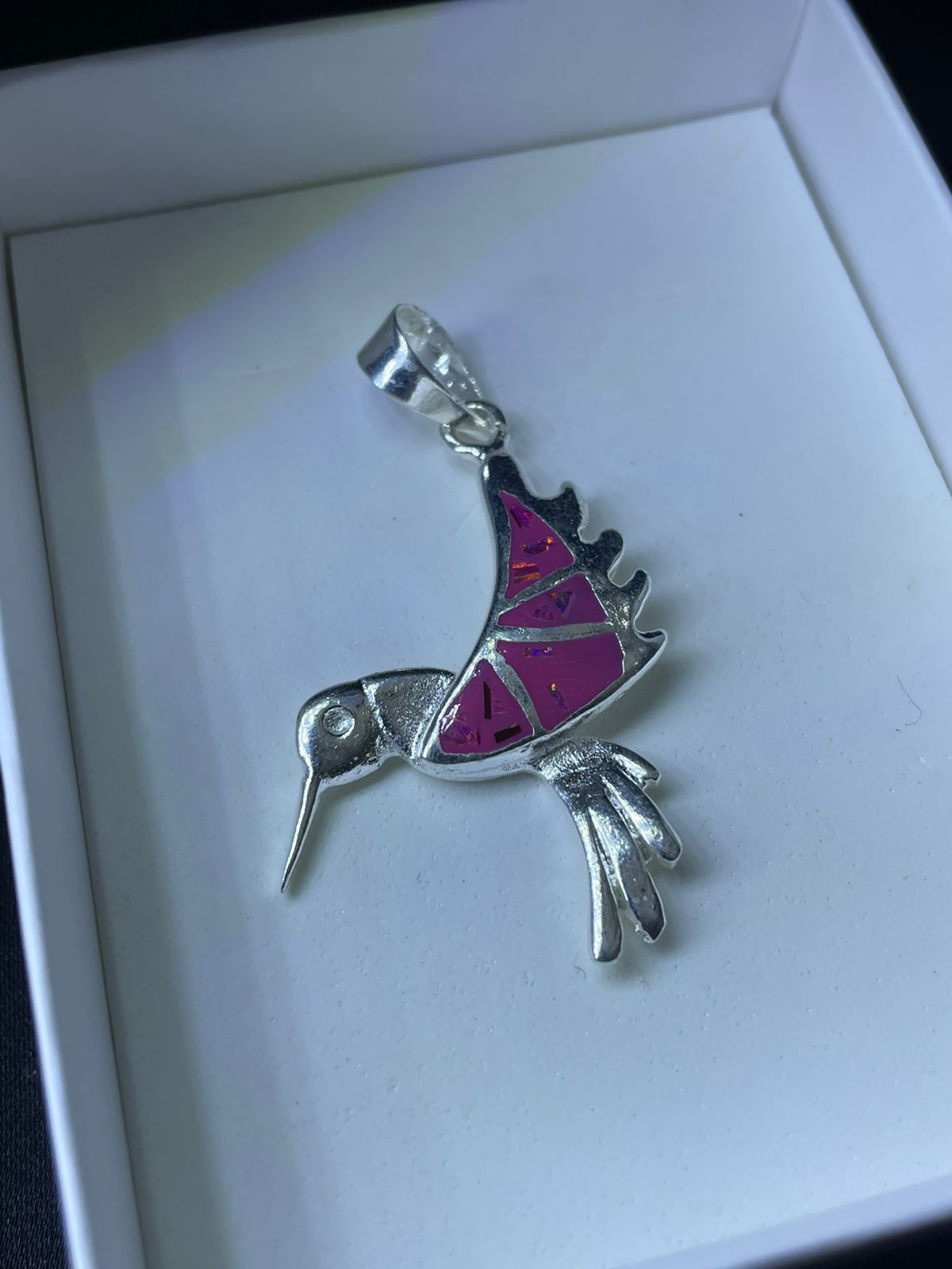 Dije colibrí de ópalo rosa